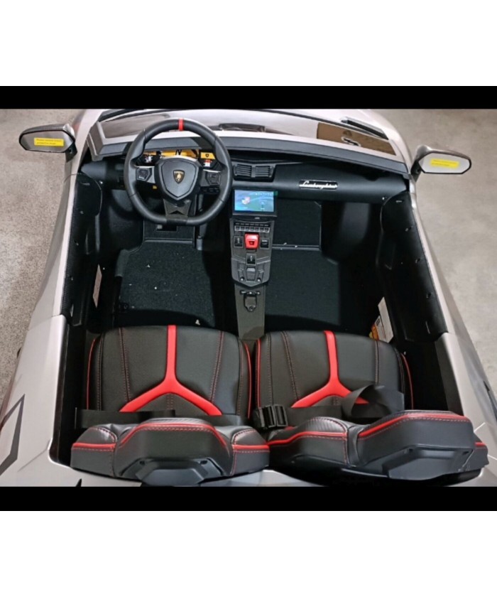 Η 24Volt Lamborghini Aventador SV έχει 2 ανοιγόμενες πόρτες για την εύκολη πρόσβαση στο αυτοκίνητο & υπάρχουν ζώνες ασφαλείας σε κάθε ρυθμιζόμενο δερμάτινο κάθισμα