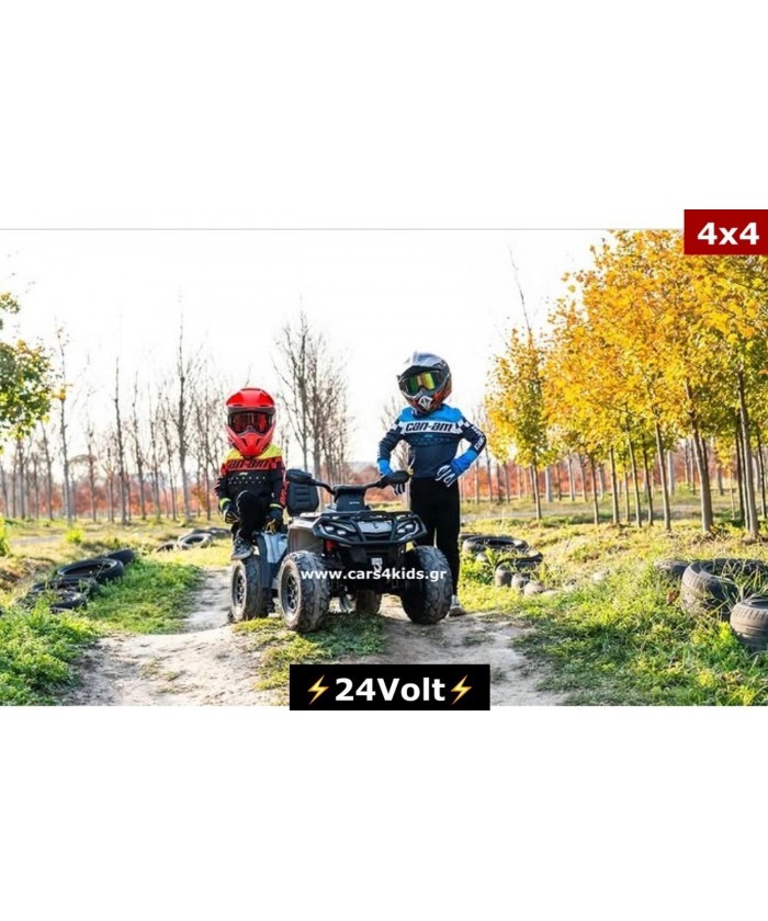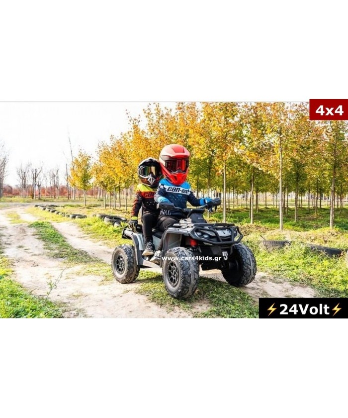Το Διθέσιο 24Volt CAN-AM Outlander 4x4 είναι το Αυθεντικό CAN-AM με σήματα Γνησιότητας σε όλο το όχημα & έχει 4 πανίσχυρα μοτέρ με 200 Watt το καθένα,έχει τροχούς από ΛΑΣΤΙΧΟ & οθόνη ΜΡ4 με Τouch Screen !!!