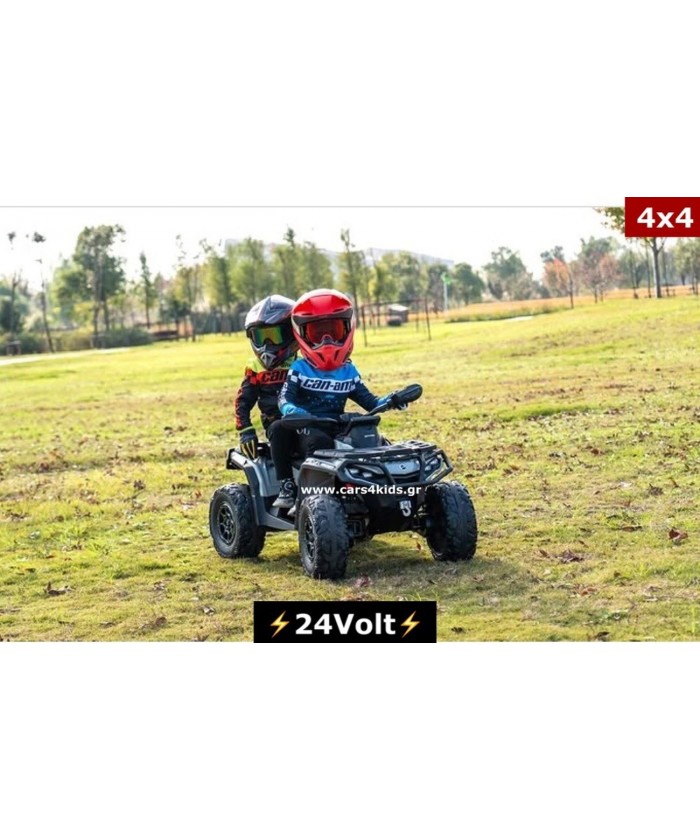 Το Διθέσιο 24Volt CAN-AM Outlander 4x4 είναι 24Volt όχημα με μπαταρία 24VOLT,7Ah που έχει διάρκεια 1 έως 2 ώρες ανάλογα με το βάρος του παιδιού και τον τρόπο χρήσης του.