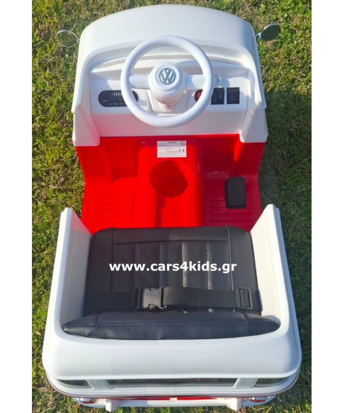 Volkswagen T1 has seat belt for the child safety and The 2.4G R/C is designed with a unique frequency for each car and the 4-way Remote Control (forward-reverse-right-left) enables the parents to drive the car with safety.
