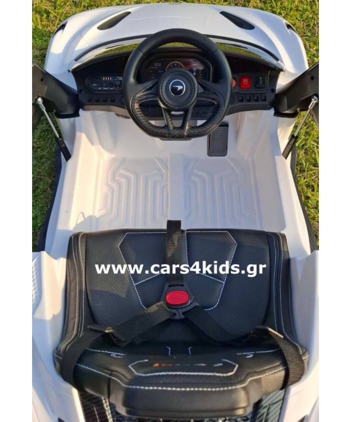 The 4x4 Mclaren 765LT has a gear lever with button for option to select Slow-medium-fast for forward or reverse,with speed 3-8 Km/hr. & for kids safety there are seat belts.
